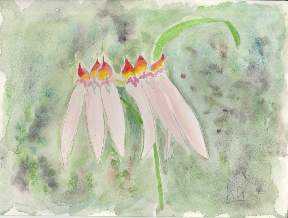 Les participants esquisseront la plante endémique choisie sur une feuille de papier aquarelle à l’aide d’un crayon, en se basant sur une photo. Ensuite, ils testeront les couleurs de leur palette sur une bande de papier pour comprendre les effets de l’aquarelle. Enfin, ils mettront en couleur leur esquisse en respectant les couleurs du modèle sur la photo.