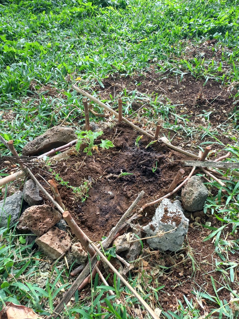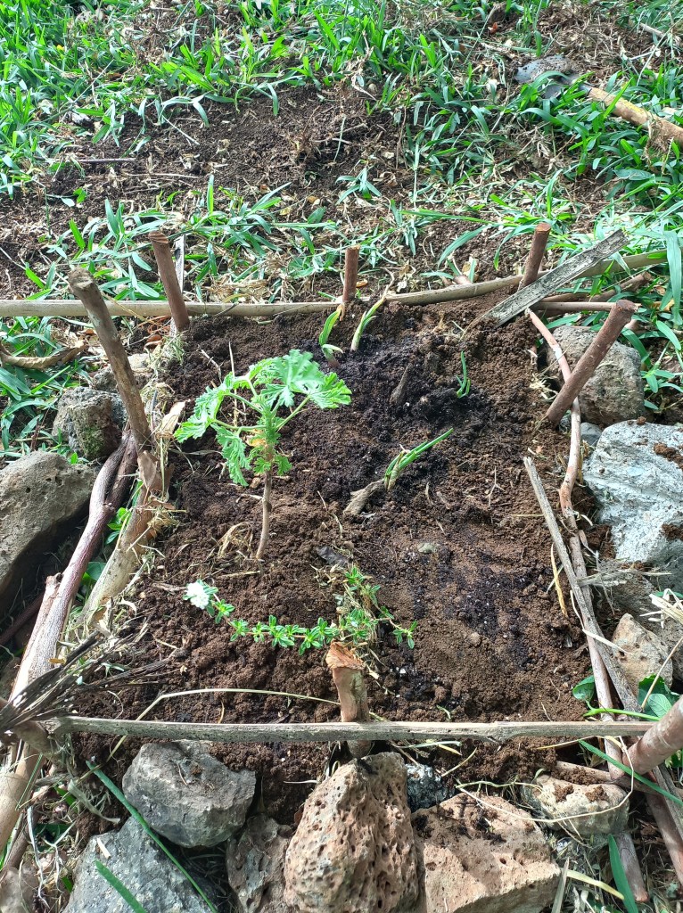 Les séances suivantes sont consacrées à l’implantation et transplantation de végétaux, semis dans les plates-bandes. Les végétaux sont cultivés en association pour éloigner les insectes nuisibles et favoriser leur croissance. Les participants sont initiés à la botanique. Des treuils en bambou et bois de goyavier sont mis en place. Les stagiaires expérimentent comment faire des nœuds de marin avec de la corde. Les élèves mettent en place des oyas, dans les plates-bandes existantes et dans les plates-bandes qu’ils auront construites. Ils mettront également des buttes de terre et de paillis qui serviront à l’implantation des légumes racin
